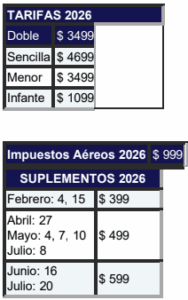 - Impuestos aéreos por persona (999 USD).
