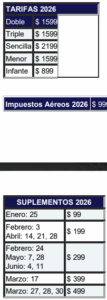 - Impuestos aéreos: 999 USD.