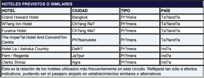 por elefante). - Ningún servicio no especificado como incluido o especificado como opcional.