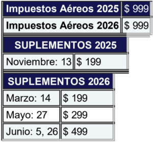 - Impuestos aéreos por persona
